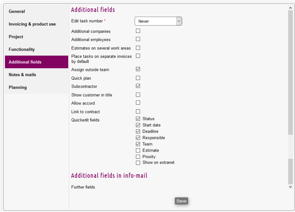 - Further fields: The fields checked here, are displayed in the mails you send within the tasks