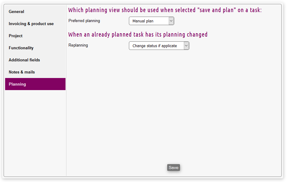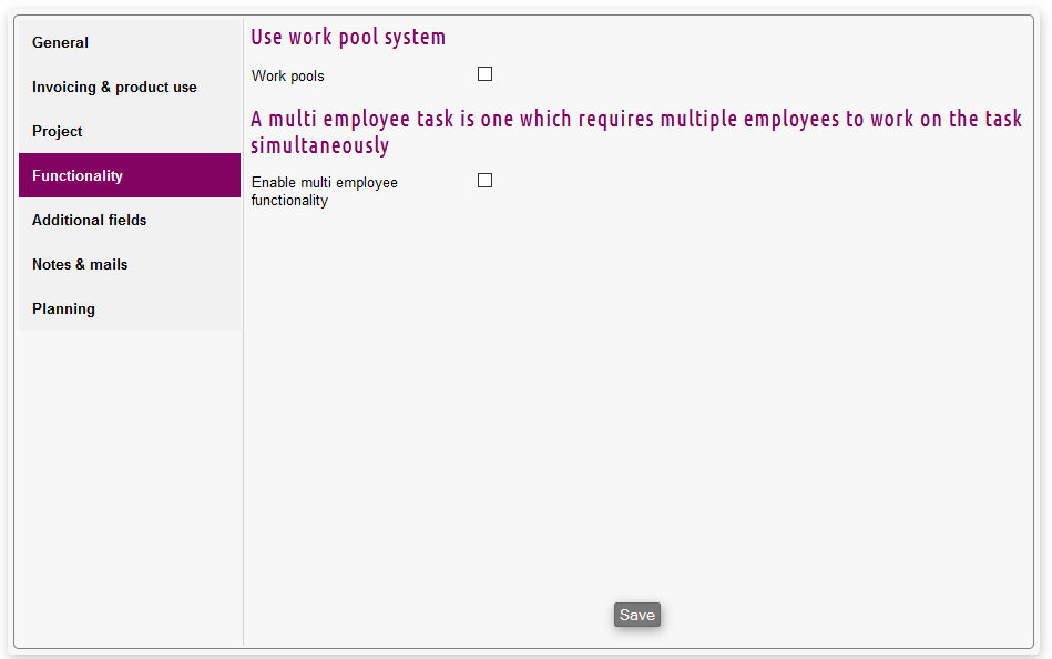 - Enable multi employee functionality: If checked, tasks may be marked as allowing multiple employees, which then affects the planning