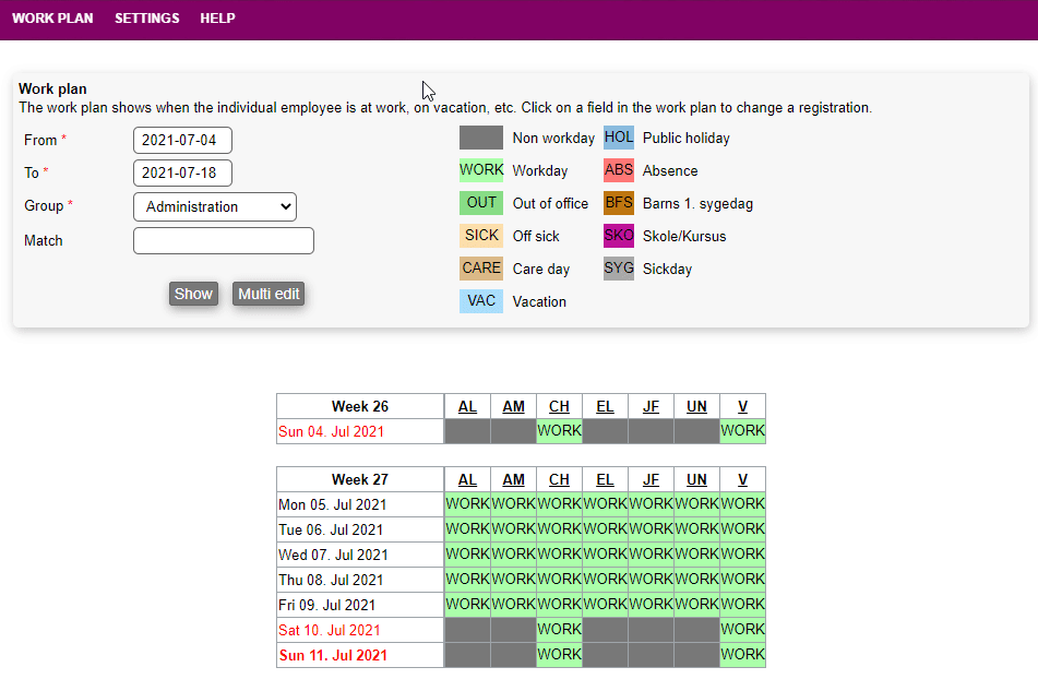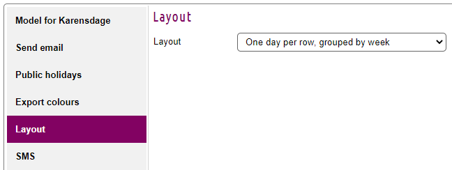 Layout: Here you can choose how you would like to see the work plan. Choose between: