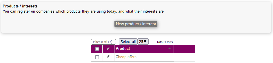 By clicking on the New product / interest button, you only need to fill out the following information: