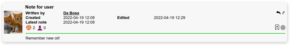 The green line indicates that the note is visible on the extranet.