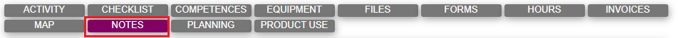 The purpose of the Notes tab is to record and communicate internally between users and externally with persons either pr. mail or on objects on the Extranet.