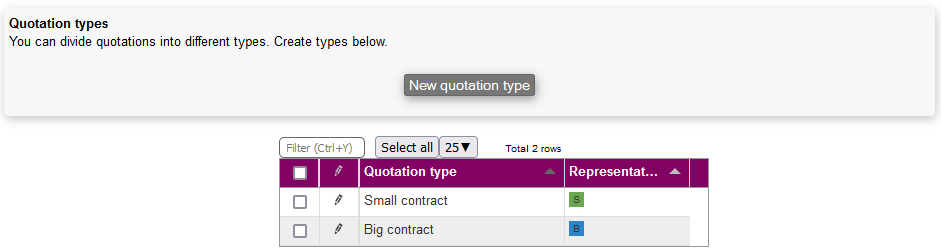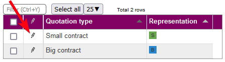 Editing a quotation type happens on the same menu. Just click on the pencil to enter edit mode.