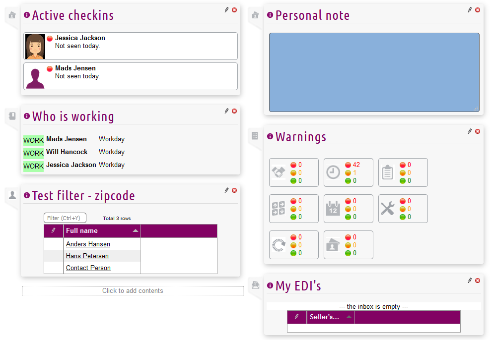 Here is an example of other types of content for the Microbizz start page. These could be associated with info boxes and are basically standardized content from the various Microbizz modules to be shown on the start page e.g. information from the work plan, from your calendar etc.