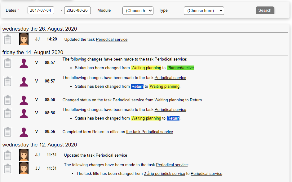 The activity tab is used in most modules and shows a user friendly chronological log of activity on the specific object.