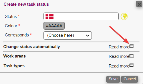 Furthermore, you can expand the task status creation box even more by clicking on the small square next to the text "Read more".