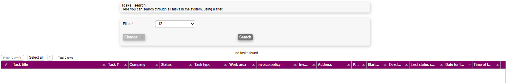 In the task module filters are commonly used to find specific tasks that match the filter criteria.
