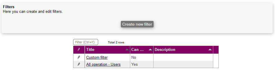 In the same menu, it's possible to edit and delete the existing filters.