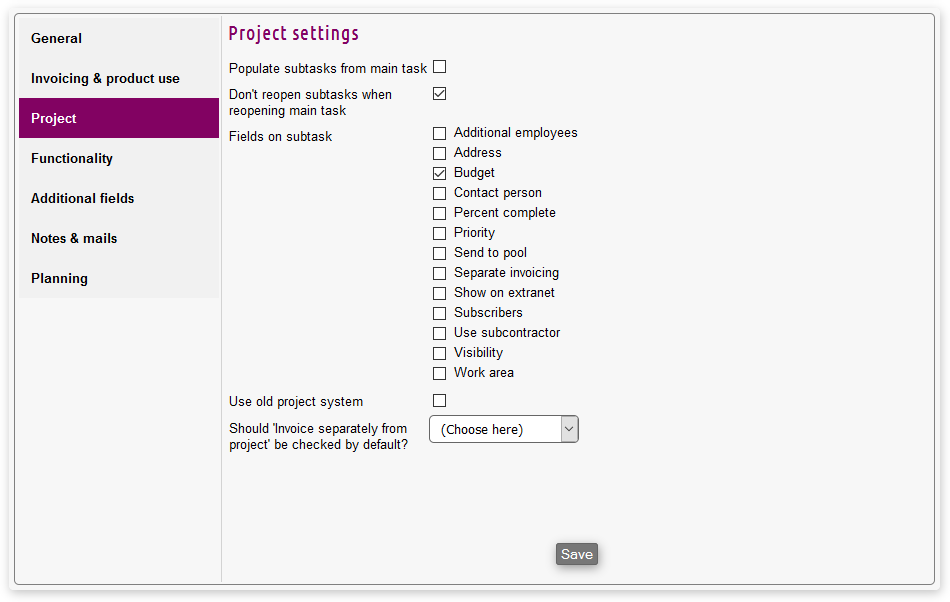 Should 'Invoice separately from project' be checked by default?: Choose between one of the following options:
