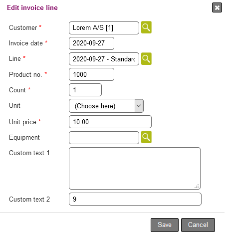 Unit: Here you can choose which unit the invoice line should be e.g. pieces.