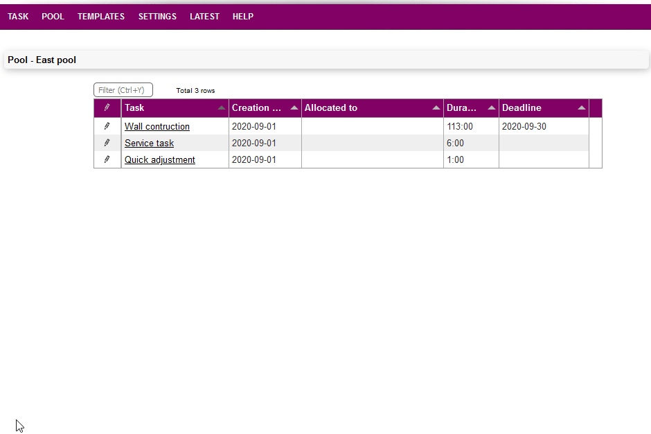 Tasks can be divided into pools, which essentially is just a groupof tasks. E.g. you can create a pool for urgent tasks, to help you organize your tasks and their importance.