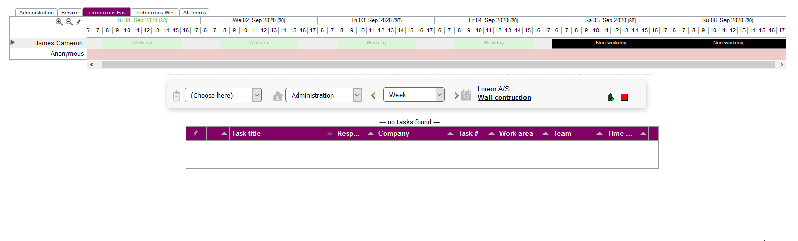 The pools are available as filters in the planning module where you can execute the planning directly by dragging the tasks from the pool, to the user.