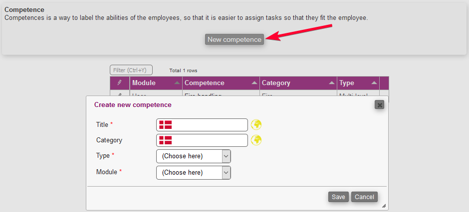 Equipment - when editing an equipment you may select which competences are needed, you can only select competences that relate to the Equipment module