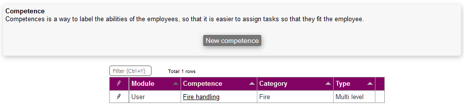 You can get an overview of the competences in the menu USERS > COMPETENCES in the Users module.