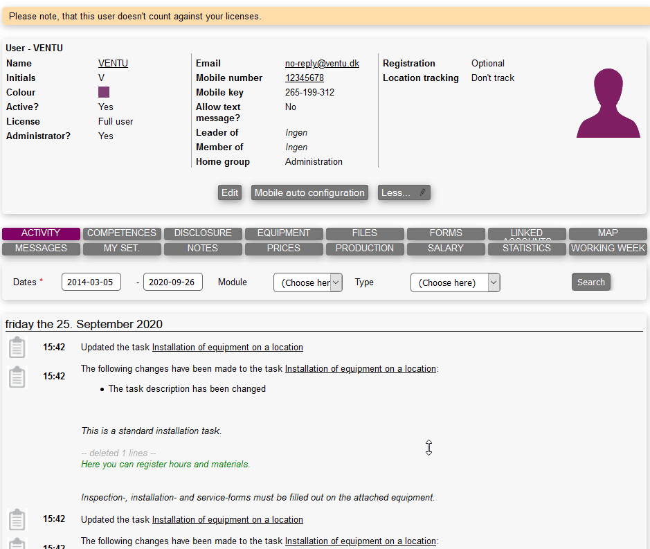 Task - this specifies which competences are required for this task, the Planning module will give a warning when you try to plan a task to a user without the required competences