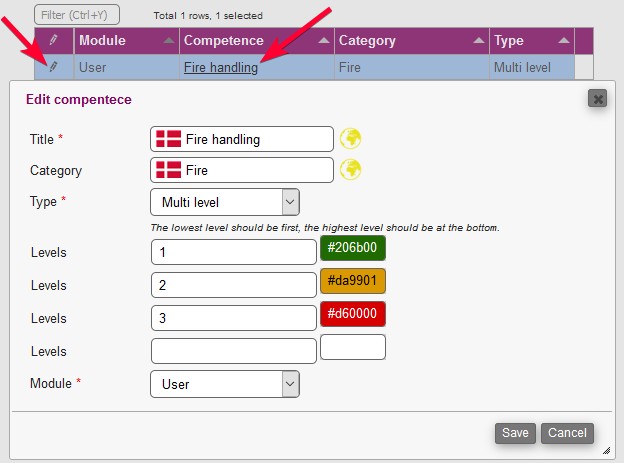 Editing a competence happens in the same menu. Just click on the pencil or directly on the title to enter edit mode.