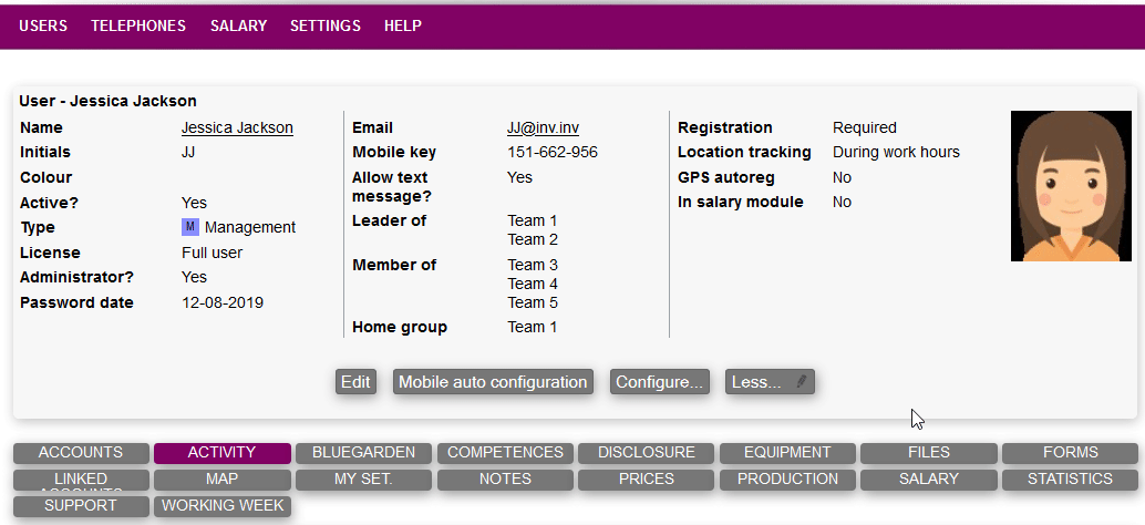 - Calculate salary?: Use this checkmark to decide if the user should be included in the salary calculation