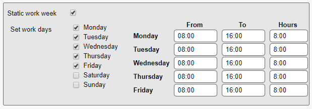 When creating a user, you can add a workweek. This is used to for different purposes in Microbizz. For example when to plan a task, or for salary purposes. You can choose to ignore this section by not activating it.