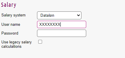 In Dataløn you have a company number. You need to add this as the username when selecting Dataløn as your salary system.