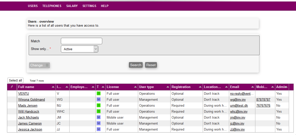 In the user module filters are commonly used to find specific users that match the filter criteria.