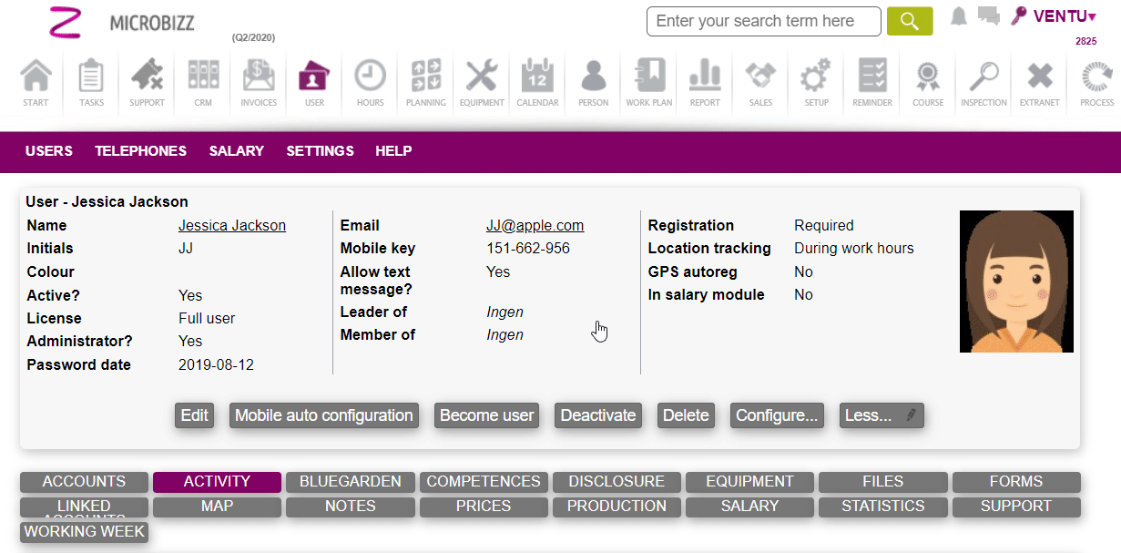User types are categories for the users in Microbizz and to read more about User types please see the following section: User types