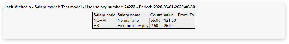 This shows the final salary output, where everything is assigned to the proper salary codes, as according to the salary model for each user.