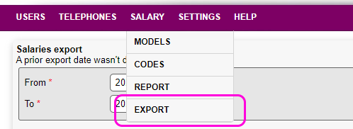 In order to export the salary, you just select the salary period and press the export salaries button, which will then guide you through the rest of the process, which depends on which salary system you are using.