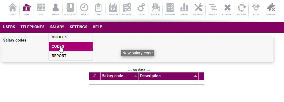 Salary codes makes up the salary specification and can be though of as the "boxes" where the different part of a salary is sorted. Example of salary codes could be: