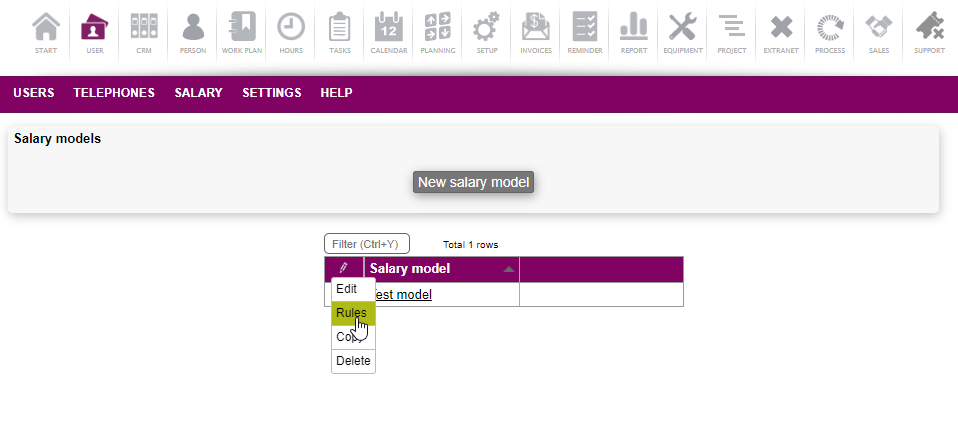 Salary rules typically belongs in a salary model, and dictates how the salary codes are filled to make the final salary specification. Salary rules can also be created directly on users and also on tasks.