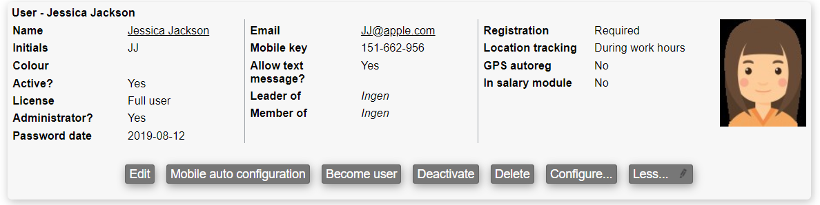 Deactivate: When a user is no longer needed it can be activated here. See below for details.